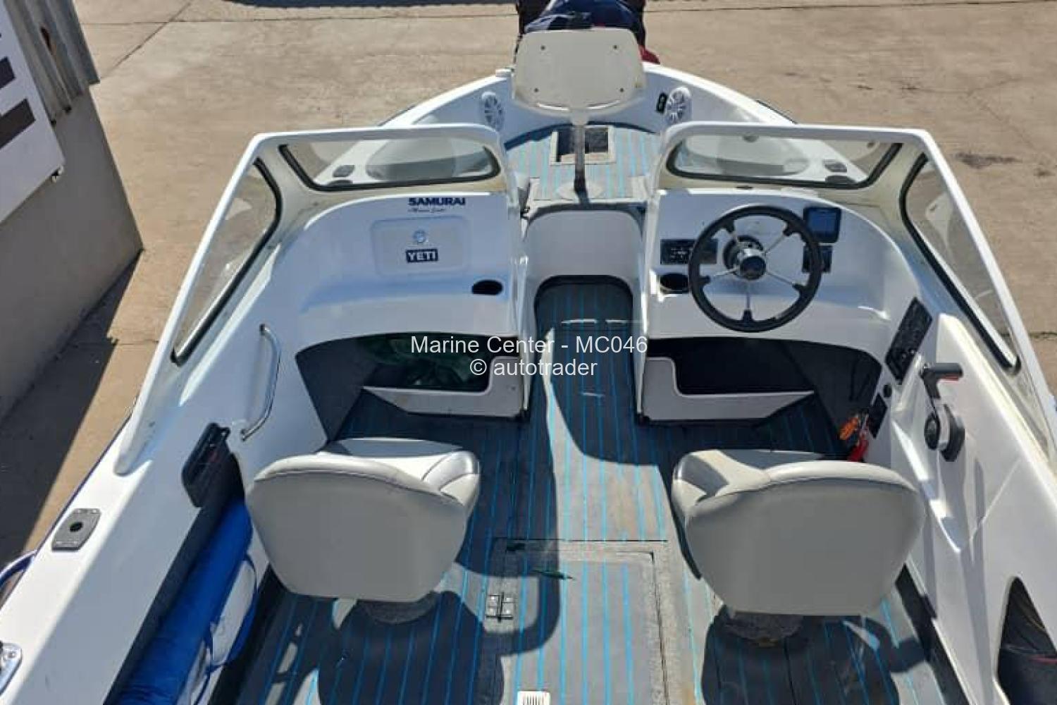 Boat Model: 19ft Samurai Boat on Trailer Outboard: Suzuki 250SS - 87hrs Extras: Front Deck, Fishing Chair, Bass Motor Mount, rear deck with built in livewell, Oil filled axle with brakes, Trailer reg is up to date, KA # 2x Bermuda steps & S/S propeller (on motor) & there is a spare propeller. Comes with: 6x 25lt Off Shore Tanks 2x Built in cooler boxes 2x Batteries Music System with 4x speakers 2x Umbrellas Jockey Wheel Winch