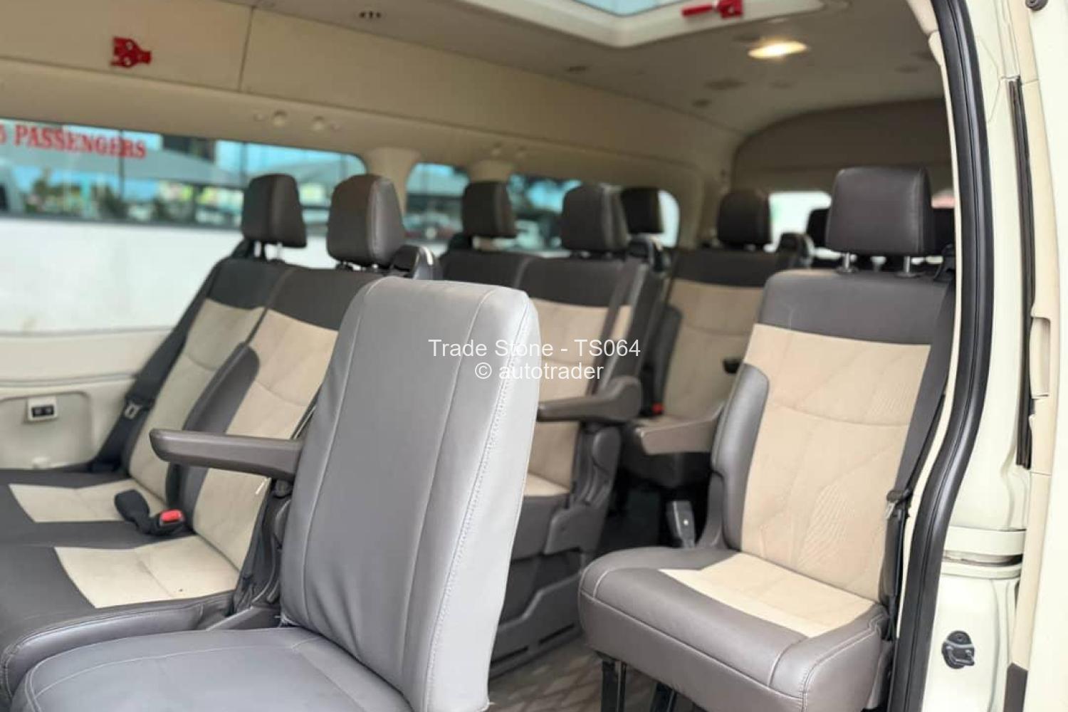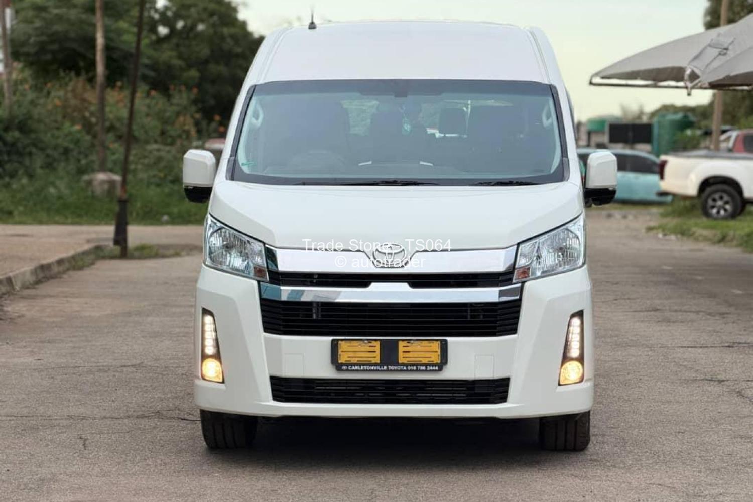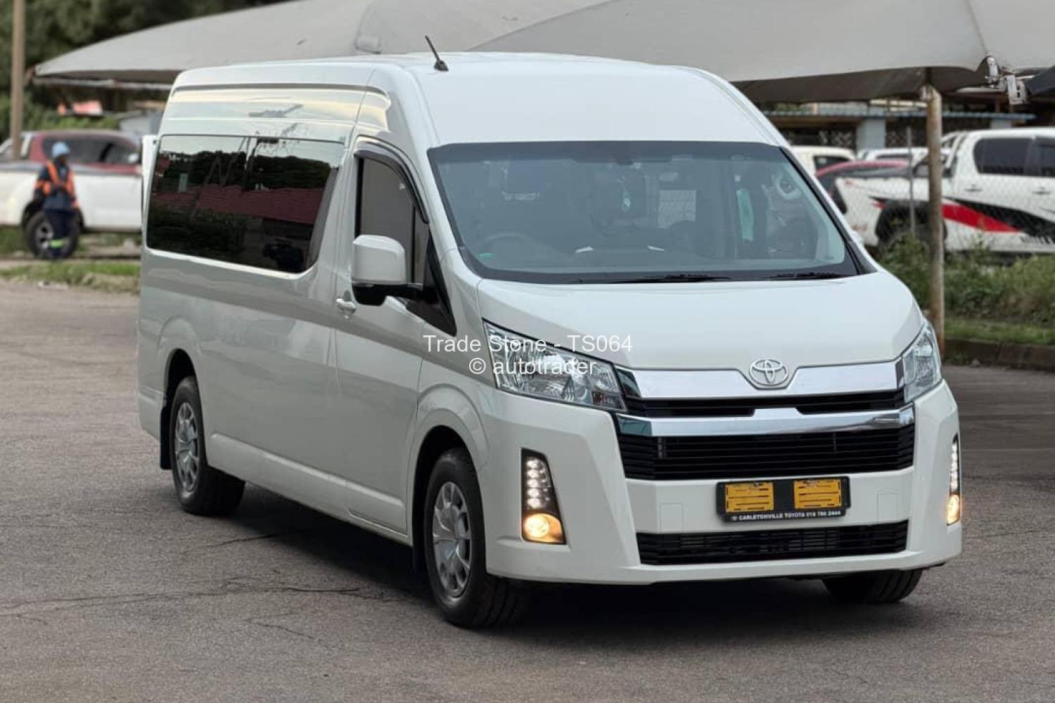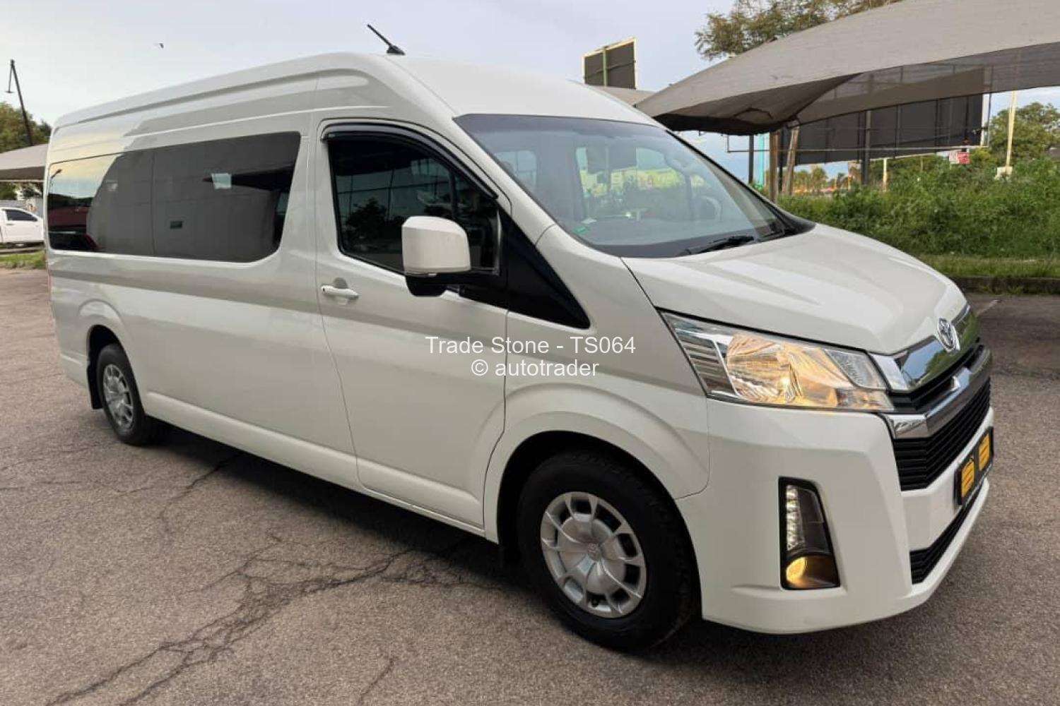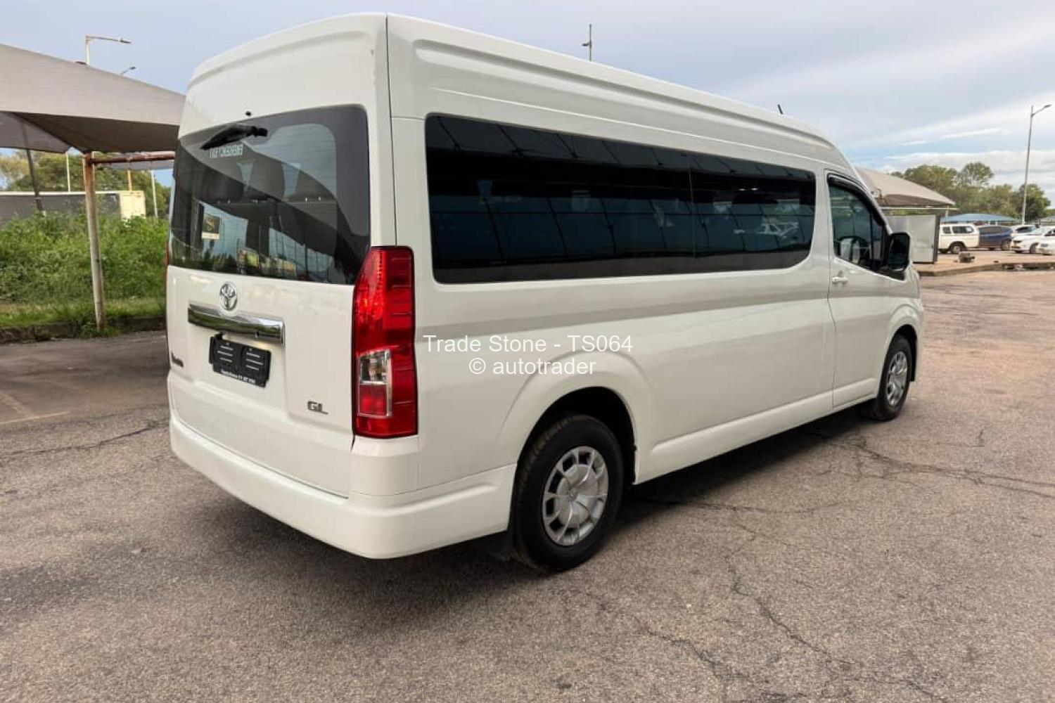 Toyota Hiace GL* minibus/van, typically specd with: -,Dutypaid - *Body style:* White high-roof passenger van --15 seater - 2. 8L diesel (1GD/ engine, - *Transmission:* manual 6speed - *Drive:* Rearwheel drive (RWD). - *Features:* Sliding side doors, tinted rear windows, LED or halogen headlights (as shown), and a front grille with Toyota emblem. - *Typical uses:* Commercial transport, shuttle service, or family minibuses.